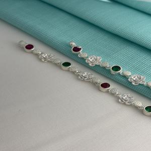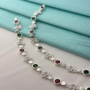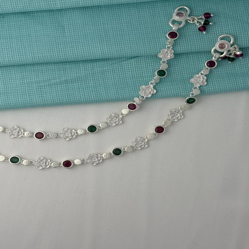 Classic Flat Flower Linking Round Stone Anklet - 825 Cadmium Free Silver Anklet.(Anti Turnish)
