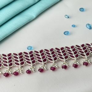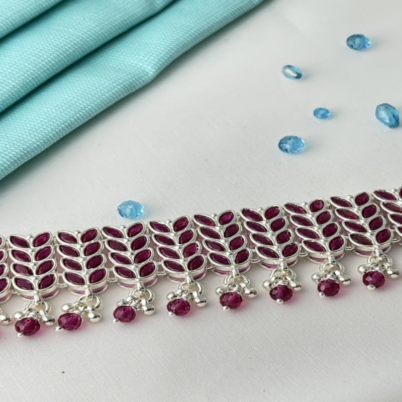 Emerald Color Floral Snake Chain Anklet - 825 Cadmium Free Silver Anklet. (Anti Turnish)