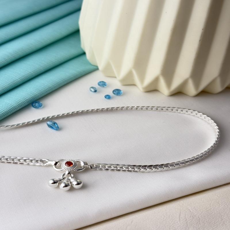 Italiyana Wide Bone Chain Imported Anklet - 825 Cadmium Free Silver Anklet.(Anti Turnish)