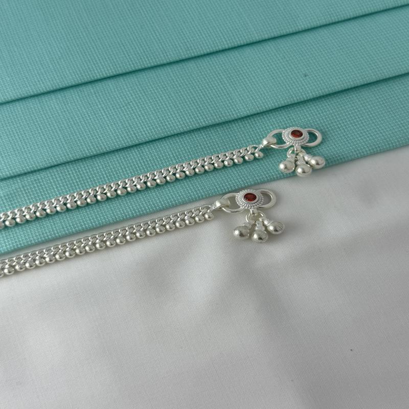 Plain Kadap Chain Classic Shining Round Ball - 825 Cadmium Free Silver Anklet.(Anti Turnish)