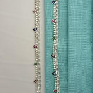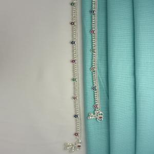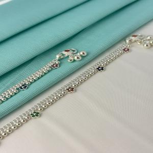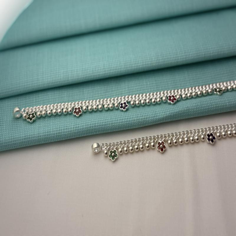 Plain Kadap Chain With Classic Shining Ball And Colorful Flower - 825 Cadmium Free Silver Anklet.(Anti Turnish)