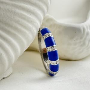 "Sapphire Gleam Enamel Band: It captures the essence of sophistication and confidence with its deep blue enamel finish and radiant crystal accents. Each segment is carefully crafted and separated by sparkling dividers, creating a captivating play of color and light. This design embodies both luxury and modernity — a timeless piece that elevates any look with its rich, regal tones and refined craftsmanship."