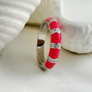Scarlet Color (5 Stone) Aurora Shine Band or Enamel Scarlet Color (5 Stone) Spark Band, with 8 CZ Stone and Rhodium Polish,Colour Stacking Ring, Gift For Her - 925 IMPORTED SILVER RINGS