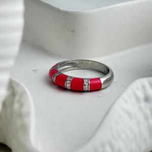 "Crimson Royale Enamel Band: Vibrant, bold, and full of character — the Crimson Royale Enamel Band is designed for those who love to stand out with elegance. Featuring rich red enamel segments separated by shimmering crystal-studded dividers, this ring captures the perfect blend of color and brilliance. Its unique segmented design and flawless polish create a luxurious aesthetic that transitions effortlessly from chic daytime wear to sophisticated evening glamour."