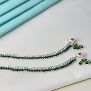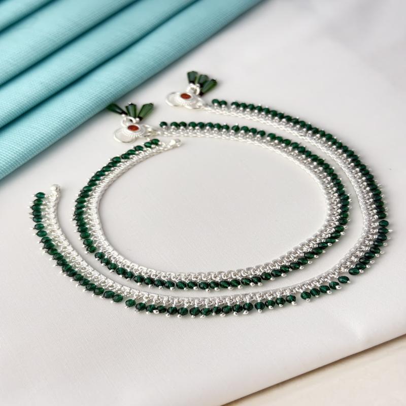 Thin Light Weight Naka Chain Single Line Princess (DARK GREEN) Beads - 825 Cadmium Free Silver Anklet. (Anti Tarnish)
