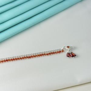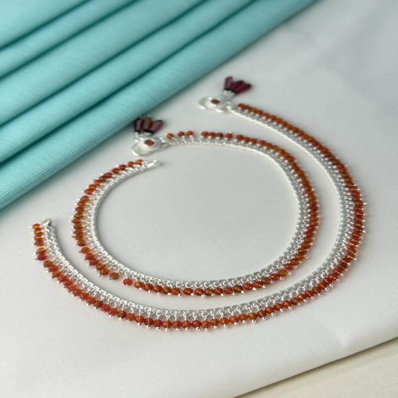 ' Sparkling Anklet: Add a splash of color to your traditional style with this exquisite silver anklet featuring vibrant floral motifs in red, blue, and green. Enhanced with playful dangling beads, it blends elegance with a cheerful charm. Perfect for festive celebrations, weddings, or daily wear, this anklet is designed to make every step more graceful and joyful.