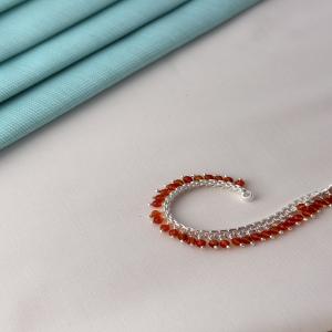 Thin Light Weight Naka Chain Single Line Princess (RED) Beads - 825 Cadmium Free Silver Anklet. (Anti Tarnish)
