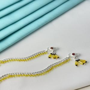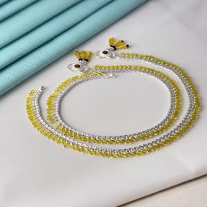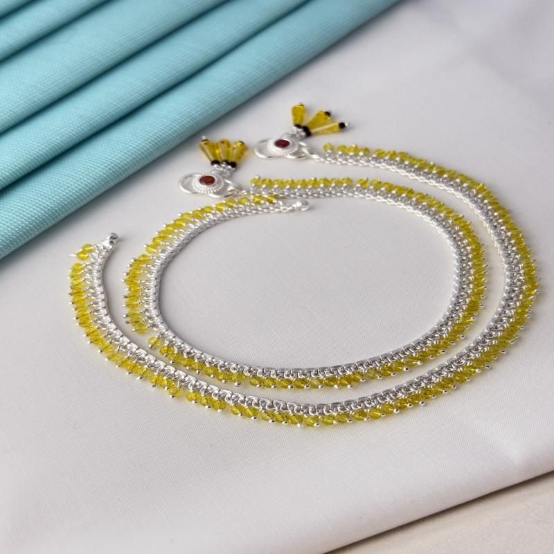 Thin Light Weight Naka Chain Single Line Princess (YELLOW) Beads - 825 Cadmium Free Silver Anklet.(Anti Turnish)