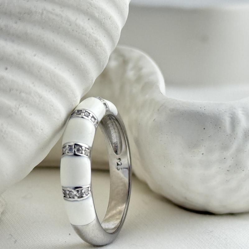 The Ivory Grace Enamel Band is the epitome of minimalist elegance and refined craftsmanship. Featuring a smooth ivory-white enamel finish accentuated by gleaming crystal-studded dividers, this ring radiates timeless charm and effortless luxury.