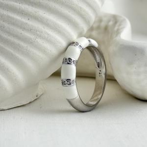 "Ivory Grace Enamel Band: This is the the epitome of minimalist elegance and refined craftsmanship. Featuring a smooth ivory-white enamel finish accentuated by gleaming crystal-studded dividers, this ring radiates timeless charm and effortless luxury. Its clean design and high-shine finish make it an essential piece for both everyday sophistication and special occasions. A true classic with a modern twist — designed for those who appreciate subtle brilliance."